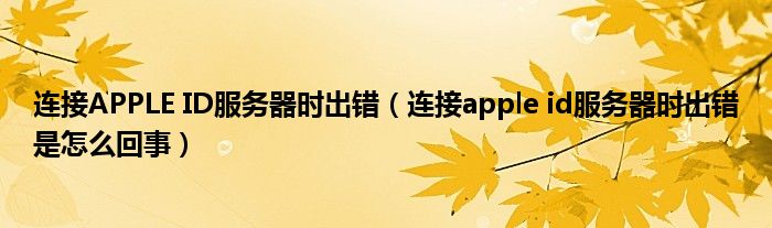 关于连接APPLE ID服务器时出错,连接apple id服务器时出错是怎么回事这个很多人还不知道,今天菲菲来为大家解答以上的问题,现在让我们一起来看看吧!