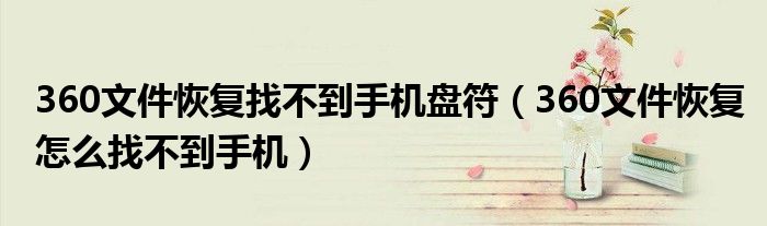 关于360文件恢复找不到手机盘符,360文件恢复怎么找不到手机这个很多人还不知道,今天菲菲来为大家解答以上的问题,现在让我们一起来看看吧!