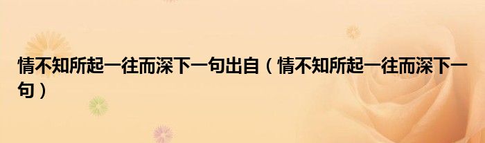 关于情不知所起一往而深下一句出自,情不知所起一往而深下一句这个很多人还不知道,今天菲菲来为大家解答以上的问题,现在让我们一起来看看吧!