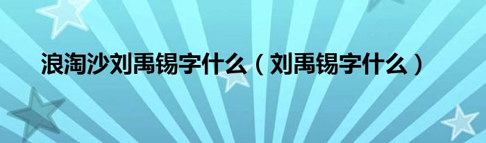 关于浪淘沙刘禹锡字什么,刘禹锡字什么这个很多人还不知道,今天菲菲来为大家解答以上的问题,现在让我们一起来看看吧!