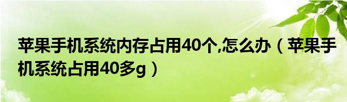 大家好,小晋来为大家解答以下问题,关于苹果手机系统内存占用40个,怎么办,苹果手机系统占用40多g很多人还不知道,今天让我们一起来看看吧!