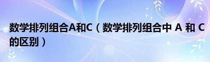 关于数学排列组合A和C,数学排列组合中 A 和 C的区别这个很多人还不知道,今天菲菲来为大家解答以上的问题,现在让我们一起来看看吧!