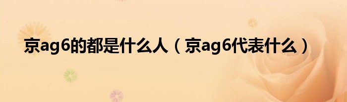 大家好,小晋来为大家解答以下问题,关于京ag6的都是什么人,京ag6代表什么很多人还不知道,今天让我们一起来看看吧!