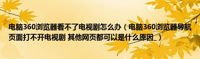 电脑360浏览器看不了电视剧怎么办(电脑360浏览器导航页面打不开电视剧 其他网页都可以是什么原因_)