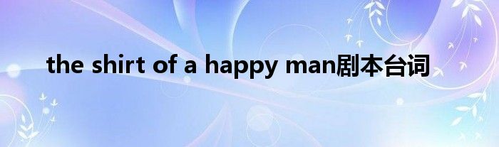 关于the shirt of a happy man剧本台词这个很多人还不知道,今天菲菲来为大家解答以上的问题,现在让我们一起来看看吧!