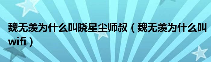 关于魏无羡为什么叫晓星尘师叔,魏无羡为什么叫wifi这个很多人还不知道,今天菲菲来为大家解答以上的问题,现在让我们一起来看看吧!