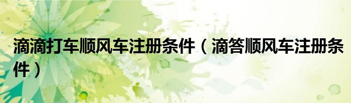 关于滴滴打车顺风车注册条件,滴答顺风车注册条件这个很多人还不知道,今天菲菲来为大家解答以上的问题,现在让我们一起来看看吧!