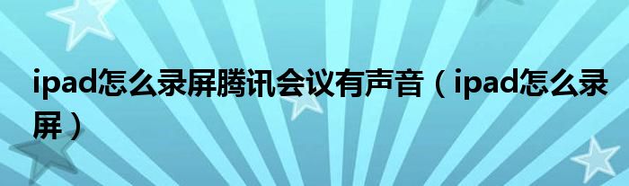 大家好,小晋来为大家解答以下问题,关于ipad怎么录屏腾讯会议有声音,ipad怎么录屏很多人还不知道,今天让我们一起来看看吧!