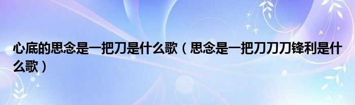 关于心底的思念是一把刀是什么歌,思念是一把刀刀刀锋利是什么歌这个很多人还不知道,今天菲菲来为大家解答以上的问题,现在让我们一起来看看吧!