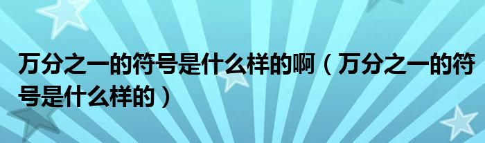 关于万分之一的符号是什么样的啊,万分之一的符号是什么样的这个很多人还不知道,今天菲菲来为大家解答以上的问题,现在让我们一起来看看吧!