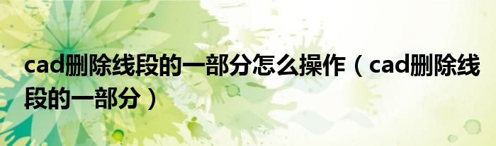 大家好,小晋来为大家解答以下问题,关于cad删除线段的一部分怎么操作,cad删除线段的一部分很多人还不知道,今天让我们一起来看看吧!