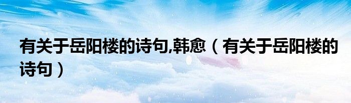 关于有关于岳阳楼的诗句,韩愈,有关于岳阳楼的诗句这个很多人还不知道,今天菲菲来为大家解答以上的问题,现在让我们一起来看看吧!