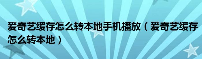 大家好,小晋来为大家解答以下问题,关于爱奇艺缓存怎么转本地手机播放,爱奇艺缓存怎么转本地很多人还不知道,今天让我们一起来看看吧!