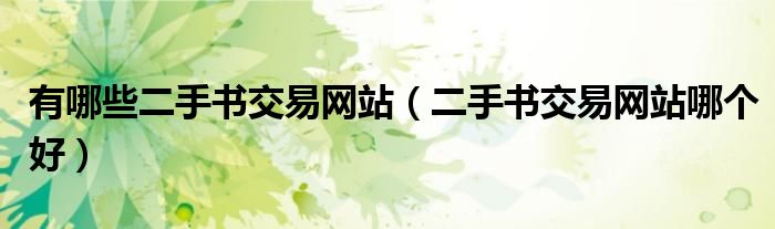 大家好,小晋来为大家解答以下问题,关于有哪些二手书交易网站,二手书交易网站哪个好很多人还不知道,今天让我们一起来看看吧!