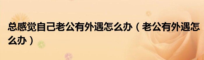 关于总感觉自己老公有外遇怎么办,老公有外遇怎么办这个很多人还不知道,今天菲菲来为大家解答以上的问题,现在让我们一起来看看吧!