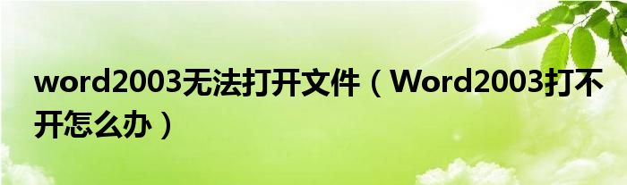 关于word2003无法打开文件,Word2003打不开怎么办这个很多人还不知道,今天菲菲来为大家解答以上的问题,现在让我们一起来看看吧!
