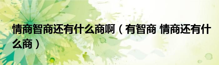关于情商智商还有什么商啊,有智商 情商还有什么商这个很多人还不知道,今天菲菲来为大家解答以上的问题,现在让我们一起来看看吧!