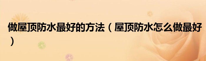 关于做屋顶防水最好的方法,屋顶防水怎么做最好这个很多人还不知道,今天菲菲来为大家解答以上的问题,现在让我们一起来看看吧!