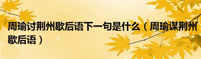 大家好,小晋来为大家解答以下问题,关于周瑜讨荆州歇后语下一句是什么,周瑜谋荆州歇后语很多人还不知道,今天让我们一起来看看吧!