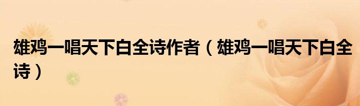 关于雄鸡一唱天下白全诗作者,雄鸡一唱天下白全诗这个很多人还不知道,今天菲菲来为大家解答以上的问题,现在让我们一起来看看吧!