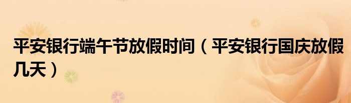 关于平安银行端午节放假时间,平安银行国庆放假几天这个很多人还不知道,今天菲菲来为大家解答以上的问题,现在让我们一起来看看吧!