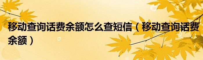 大家好,小晋来为大家解答以下问题,关于移动查询话费余额怎么查短信,移动查询话费余额很多人还不知道,今天让我们一起来看看吧!