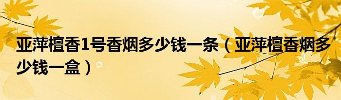 大家好,小晋来为大家解答以下问题,关于亚萍檀香1号香烟多少钱一条,亚萍檀香烟多少钱一盒很多人还不知道,今天让我们一起来看看吧!