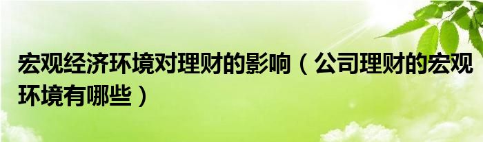 关于宏观经济环境对理财的影响,公司理财的宏观环境有哪些这个很多人还不知道,今天菲菲来为大家解答以上的问题,现在让我们一起来看看吧!