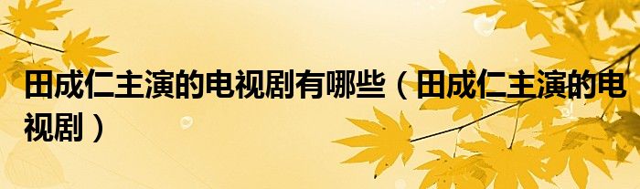 关于田成仁主演的电视剧有哪些,田成仁主演的电视剧这个很多人还不知道,今天菲菲来为大家解答以上的问题,现在让我们一起来看看吧!