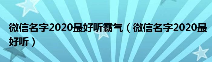 微信名字2020最好听霸气,微信名字2020最好听很多人还不知道,乐乐来为大家解答以上问题,现在让我们一起来看看吧!