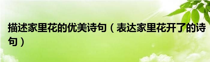 大家好,小晋来为大家解答以下问题,关于描述家里花的优美诗句,表达家里花开了的诗句很多人还不知道,今天让我们一起来看看吧!