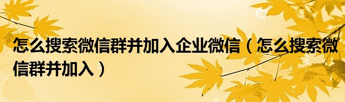 大家好,小晋来为大家解答以下问题,关于怎么搜索微信群并加入企业微信,怎么搜索微信群并加入很多人还不知道,今天让我们一起来看看吧!
