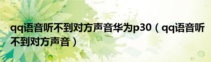 关于qq语音听不到对方声音华为p30,qq语音听不到对方声音这个很多人还不知道,今天菲菲来为大家解答以上的问题,现在让我们一起来看看吧!