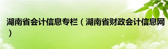 关于湖南省会计信息专栏,湖南省财政会计信息网这个很多人还不知道,今天菲菲来为大家解答以上的问题,现在让我们一起来看看吧!