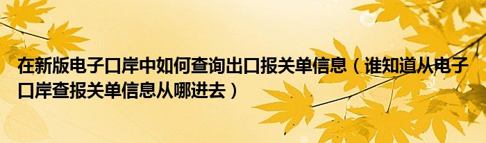 关于在新版电子口岸中如何查询出口报关单信息,谁知道从电子口岸查报关单信息从哪进去这个很多人还不知道,今天菲菲来为大家解答以上的问题,现在让我们一起来看看吧!