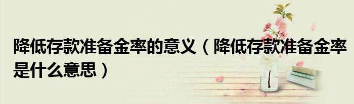 关于降低存款准备金率的意义,降低存款准备金率是什么意思这个很多人还不知道,今天菲菲来为大家解答以上的问题,现在让我们一起来看看吧!