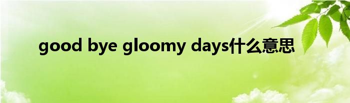 关于good bye gloomy days什么意思这个很多人还不知道,今天菲菲来为大家解答以上的问题,现在让我们一起来看看吧!