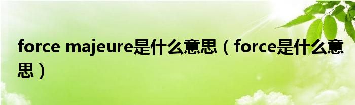 关于force majeure是什么意思,force是什么意思这个很多人还不知道,今天菲菲来为大家解答以上的问题,现在让我们一起来看看吧!