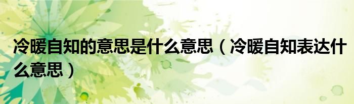 大家好,小晋来为大家解答以下问题,关于冷暖自知的意思是什么意思,冷暖自知表达什么意思很多人还不知道,今天让我们一起来看看吧!