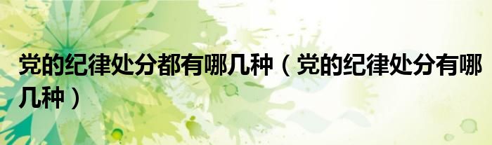 关于党的纪律处分都有哪几种,党的纪律处分有哪几种这个很多人还不知道,今天菲菲来为大家解答以上的问题,现在让我们一起来看看吧!