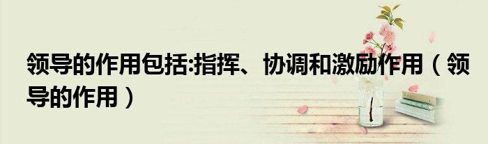 关于领导的作用包括:指挥、协调和激励作用,领导的作用这个很多人还不知道,今天菲菲来为大家解答以上的问题,现在让我们一起来看看吧!