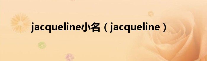 关于jacqueline小名,jacqueline这个很多人还不知道,今天菲菲来为大家解答以上的问题,现在让我们一起来看看吧!