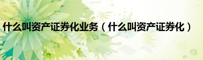 关于什么叫资产证券化业务,什么叫资产证券化这个很多人还不知道,今天菲菲来为大家解答以上的问题,现在让我们一起来看看吧!