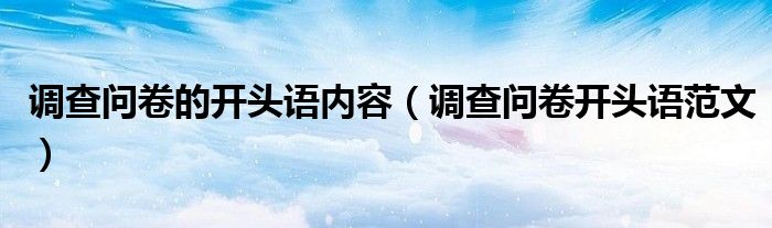 关于调查问卷的开头语内容,调查问卷开头语范文这个很多人还不知道,今天菲菲来为大家解答以上的问题,现在让我们一起来看看吧!