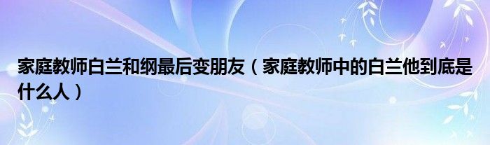 关于家庭教师白兰和纲最后变朋友,家庭教师中的白兰他到底是什么人这个很多人还不知道,今天菲菲来为大家解答以上的问题,现在让我们一起来看看吧!