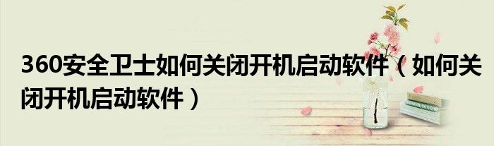 关于360安全卫士如何关闭开机启动软件,如何关闭开机启动软件这个很多人还不知道,今天菲菲来为大家解答以上的问题,现在让我们一起来看看吧!