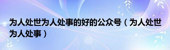 关于为人处世为人处事的好的公众号,为人处世 为人处事这个很多人还不知道,今天菲菲来为大家解答以上的问题,现在让我们一起来看看吧!