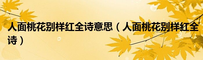 关于人面桃花别样红全诗意思,人面桃花别样红全诗这个很多人还不知道,今天菲菲来为大家解答以上的问题,现在让我们一起来看看吧!