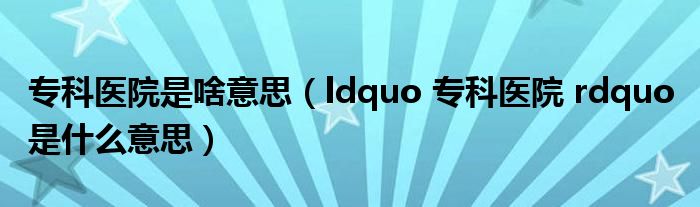 关于专科医院是啥意思,ldquo 专科医院 rdquo 是什么意思这个很多人还不知道,今天菲菲来为大家解答以上的问题,现在让我们一起来看看吧!