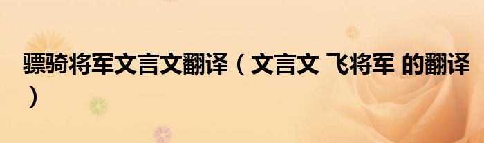 关于骠骑将军文言文翻译,文言文 飞将军 的翻译这个很多人还不知道,今天菲菲来为大家解答以上的问题,现在让我们一起来看看吧!